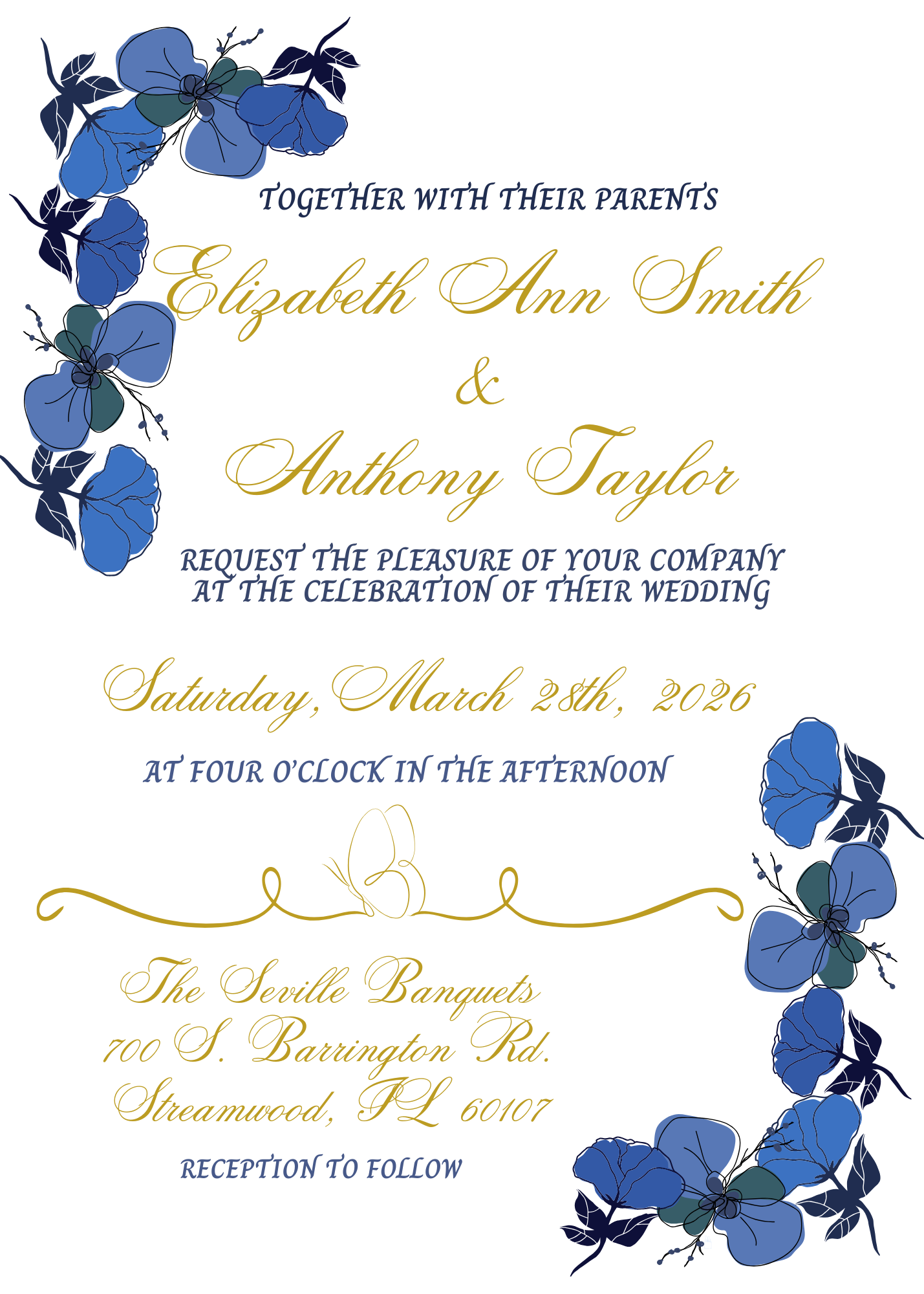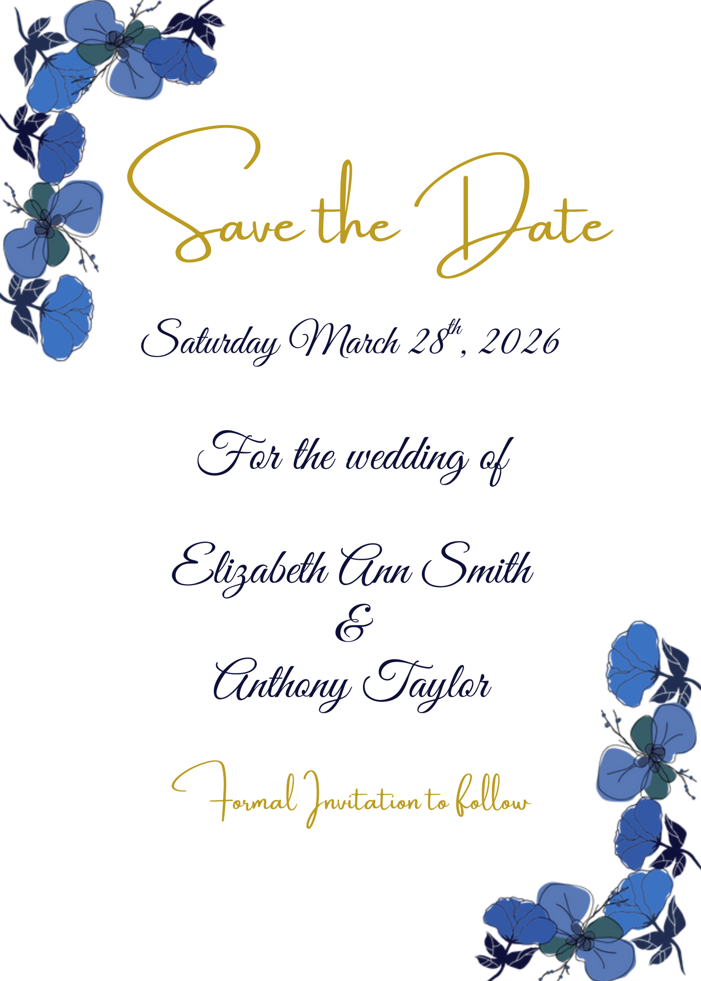 Make a memorable first impression with our Watercolor Navy Flowers wedding invitation suite. Featuring stunning florals in deep navy complemented by luxurious gold accents, this collection transforms your stationery into a work of art. Each invitation conveys sophistication and refinement, setting an elegant tone that your guests will appreciate before they even arrive. The complete suite includes coordinating response cards, save the dates and thank-you notes, ensuring visual harmony throughout your wedding communications. Ideal for couples who want their invitations to reflect both timeless beauty and artistic distinction—a choice that speaks volumes about your style and attention to detail.